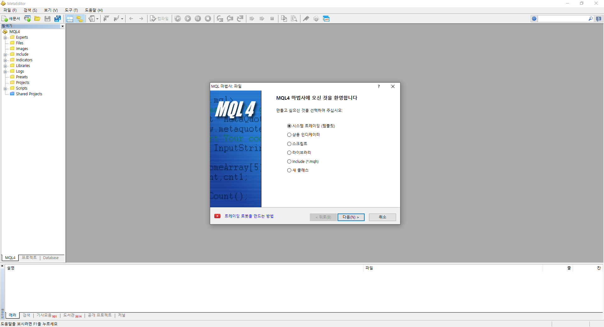 MQL4 에디터 실행 화면 4. 확장자