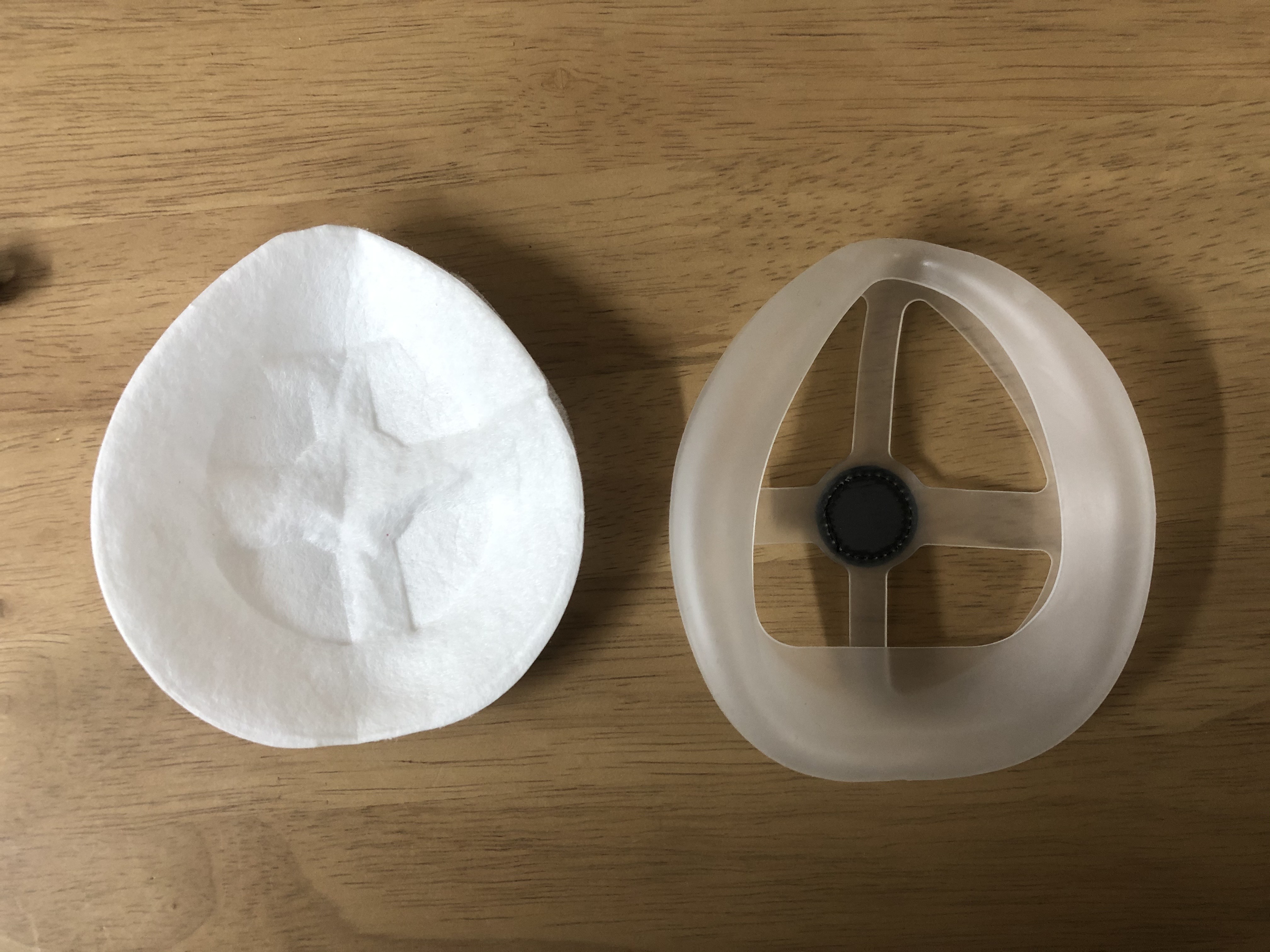 실리콘 패드의 바깥쪽 중앙에는 마스크에 부착하기 위한 부직포가 있습니다.