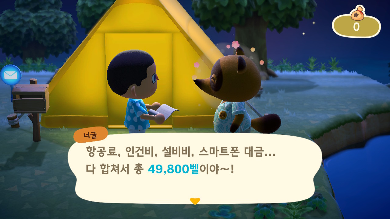 돈이 없는 필자는 너굴에게 49,800벨이라는 빚을 지게 되며,