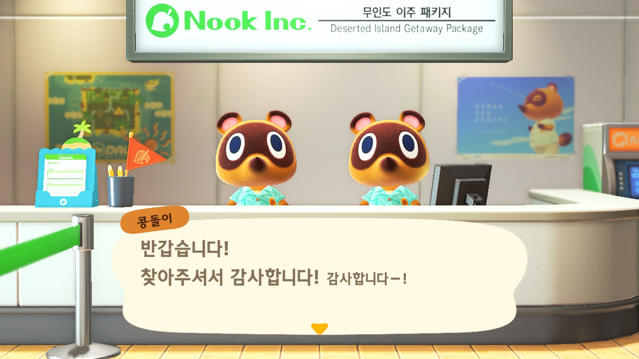 Nook Inc. 사무실 무인도로 이주하는 것을 도와주는 콩돌이와 밤돌이!