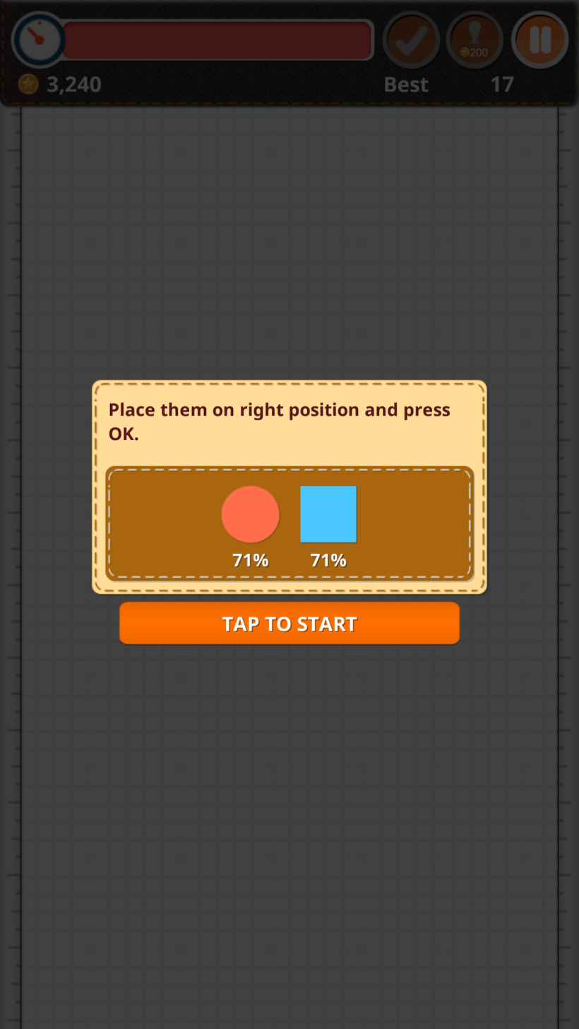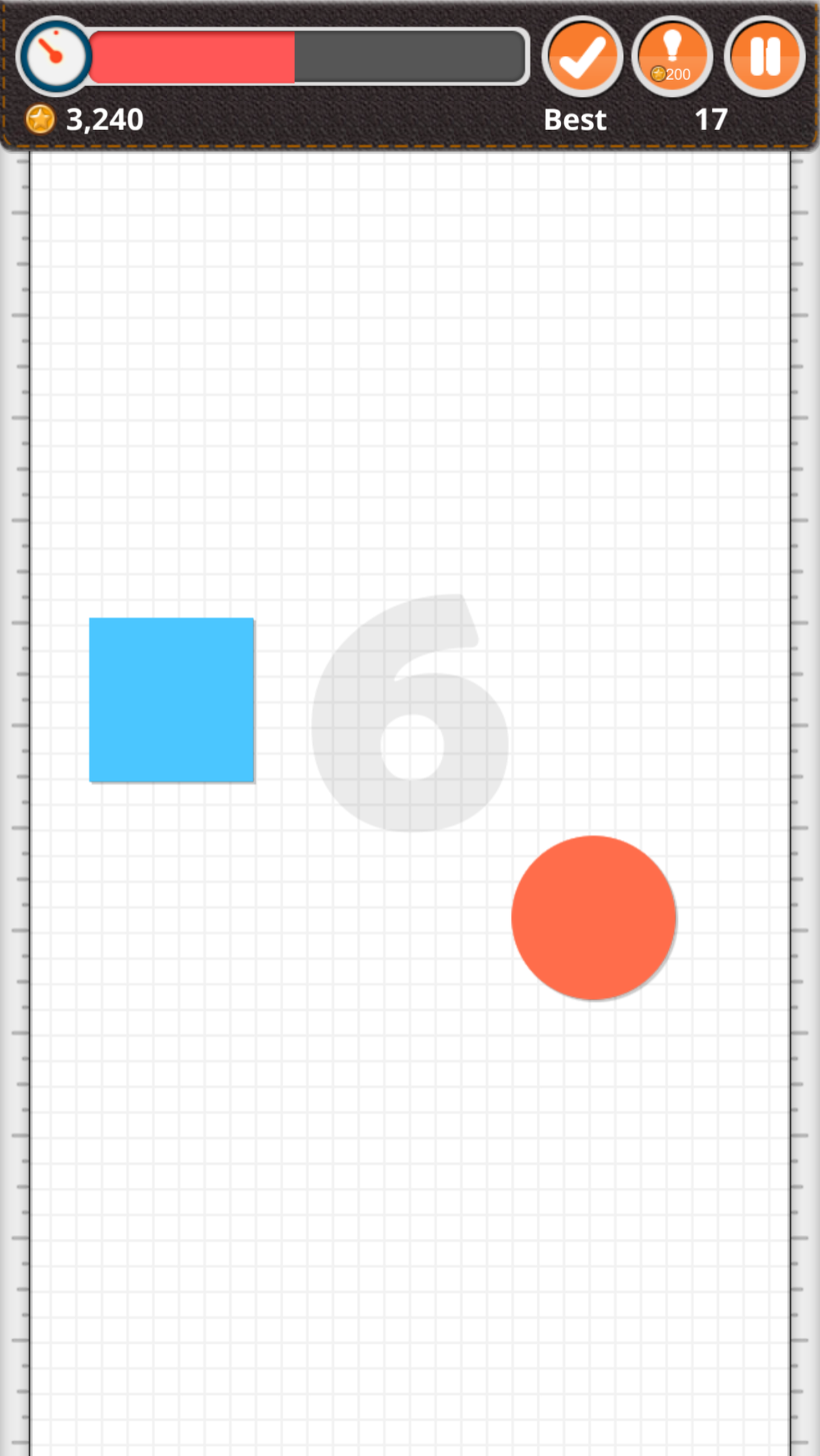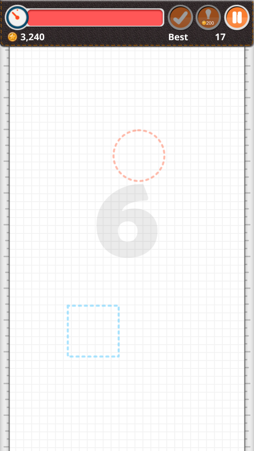힌트를 사용하면 점선 도형이 1초 동안 다시 나타나며, 게임을 좀 더 쉽게 해결할 수 있도록
