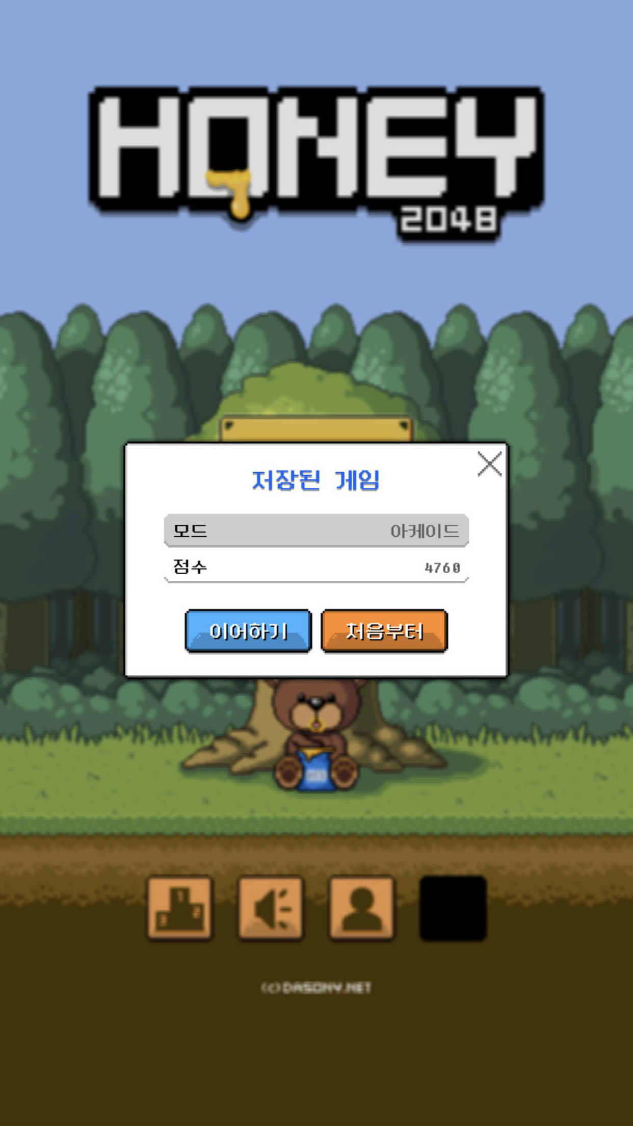 꿀을 먹고있는 귀여운 곰과 함께 2048 게임을 즐겨보세요~