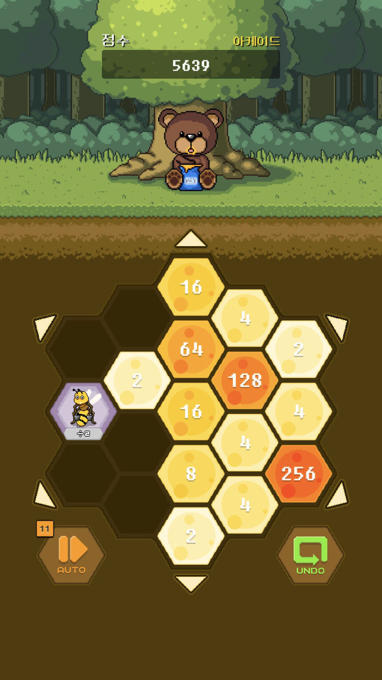Honey 2048은 육각형으로 이루어진 2048류 퍼즐 게임입니다.